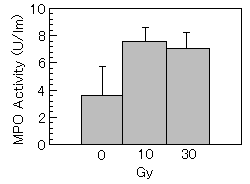 ¡¡Myeloperoxidase(MPO)¤ÎÃÇÊÒ²½¤Ï¡¢FMLP(fMet-Leu-Phe)»É·ã¤Ë¤è¤ë³èÀ²½¤Ë¤è¤Ã¤ÆÀ¸¤¸¤ë¤ÈͽÁÛ¤µ¤ì¤¿¤³¤È¤«¤é¡¢¦ÃÀþ¾È¼Í¤Ë¤è¤ë¹¥Ãæµå¤Î³èÀ²½¤Î»ØÉ¸Ê¬»Ò¤Î mRNA ¤Îȯ¸½¤Ë¤Ä¤¤¤Æ²òÀϤ·¤¿¡£ÆÃ¤Ë¡¢10 Gy ¤Î¦ÃÀþ¾È¼Í¤Ç¤Ï mRNA ¤Î¾å¾º¤¬¤ß¤é¤ì¡¢¹¥Ãæµå¤¬¦ÃÀþ¤Ë¤è¤Ã¤Æ³èÀ²½¤µ¤ì¤Æ¤¤¤ë¤³¤È¤¬¿äÄꤵ¤ì¤ë¡£ MPO ʬ»Ò¤Ï¡¢Ç®°Ê³°¤Ë¤âÊü¼ÍÀþ¤Ë¤è¤Ã¤Æ¤âÀÚÃǤµ¤ì¤ë¤³¤È¤¬¼¨¤µ¤ì¤¿¤³¤È¤«¤é¡¢Êü¼ÍÀþÈïÇø¤Ë¤è¤Ã¤ÆÀÚÃǤµ¤ì¤¿ MPO ¥Õ¥é¥°¥á¥ó¥È¤ª¤è¤Ó¥ê¥ó¥Ñµå¤Îµ¡Ç½°Û¾ï¤Ë¤è¤Ã¤Æ¡¢MPO ¹³ÂÎ (MPO-ANCA) ¤¬»ºÀ¸¤µ¤ì¤ë²ÄǽÀ¤¬¹Í¤¨¤é¤ì¤ë¡£