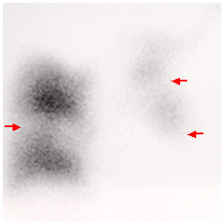 図2 肺血栓塞栓症。肺血流シンチグラフィー。肺の血流欠損が認められる(矢印)。(原論文3より引用)