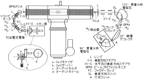図1 名古屋大学に設置されているタンデトロン加速器質量分析計の構成図(原論文1,2より引用)