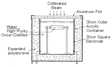 一次標準線量計として、通常熱量計が用いられている。治療現場では水に対する吸収線量を用いているので、熱量計には水を用いるのが原子組成的には好ましい。しかし、水にはヒート・ディフェクトと呼ばれ、放射線から吸収したエネルギーのうち約3%が化学的エネルギーになり、熱の発生がそれだけ少なくなるという現象がある。図1に示すような水熱量計を用いる場合には、このヒート・ディフェクトを考慮に入れる必要がある。