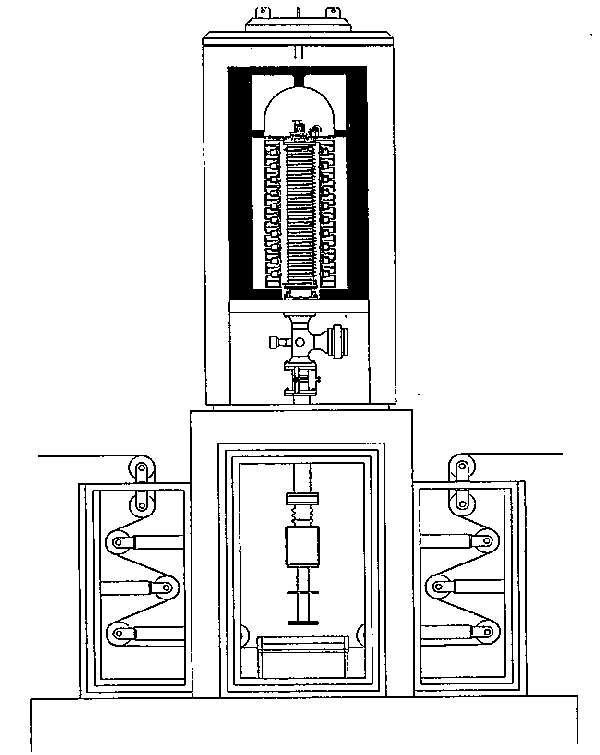 RDIは1958年に最初のダイナミトロンを開発して半世紀、最近の市場ニーズに合うように新型モデルを開発している。1.5MeV自己遮蔽型はそのうちの一つである。今まで自己遮蔽型はSurebeamなど一部のモデルを除いて1MeV未満に限られていたが、電線などの分野で、人員削減、スクラップの低減化を求める要求が強まり、製造ラインの中に設置する完全なインライン処理が可能な自己遮蔽の1.5MeV機の開発をはじめた。できるかぎり、コンパクトにするため遮蔽はスチールと鉛で構成し、幅広い製品需要に応えられるよう加速エネルギーは300KeV〜1.5MeVを選定した。遮蔽を含んで所要床面積は5m2以下で高さは約5mとなる。図1にシステムの断面図を示す。