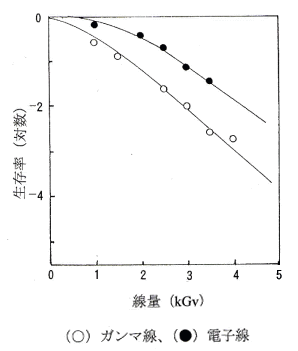 **Induction dose:生存曲線の肩の部分、すなわち生存曲線の直線部分が生存率1.0に交わる線量。