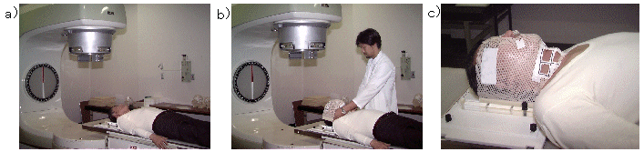 ¡¡Êü¼ÍÀþ¼£ÎŤò¹Ô¤¦ºÝ¤Ë¤Ï¡¢¤Þ¤º¡¢¼ðáç¤Î¿ÊŸÈϰϤòÆù´ã½ê¸«¡¢CT¡¢MR¤Ê¤É¤Î²èÁü¤«¤éÀµ³Î¤Ë¿ÇÃǤ·¡¢¤É¤ÎÈϰϤËÊü¼ÍÀþ¤ò¾È¼Í¤¹¤ì¤Ð¤è¤¤¤Î¤«¤òȽÃǤ¹¤ë¡£¤½¤Î¸å¡¢¥·¥ß¥å¥ì¡¼¥·¥ç¥ó¤È¤¤¤¦ºî¶È¤ò¹Ô¤¦¡£¿Þ£±¤Ë¹¢Æ¬´âÊü¼ÍÀþ¼£ÎŤˤª¤±¤ë¥·¥ß¥å¥ì¡¼¥·¥ç¥óÅù¤Î¤¿¤á¤ÎƬÉô¸ÇÄêÍÑ¥·¥§¥ë¤ÎÀßÃÖ¾õ¶·¤ò¼¨¤¹¡£