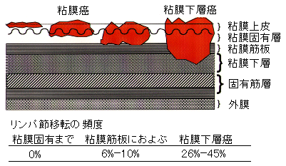 図1 食道癌の組織学的深達度とリンパ節転移の頻度