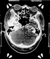 スウェーデンの脳外科医 Leksell は、定位的手法(stereotactic frameを頭蓋骨にピンで固定して1mm単位の精密な照準を行う方法)を用いて1回に高線量の放射線を正確に頭蓋内のターゲットに照射することにより、開頭手術を行わずに、ターゲット部位だけを破壊する方法を " radiosurgery " と呼んだ。このため彼が開発した装置がガンマナイフ gamma knife,正式には Leksell gamma unit である。現在は、CT,MRIなどの画像診断の進歩とともに、脳の血管の奇形でくも膜下出血の原因となる脳動静脈奇形(arterio-venous malformation, AVM)、良性の腫瘍、癌の脳転移などの治療に利用されている。