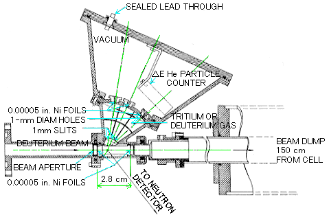 英国ハーウエル原子力研究所のJ.L.Fowlerらはこの随伴荷電粒子と中性子との同時計数を測定することによって、1.5-25MeVのエネルギー領域でNE213とNE102Aシンチレータ中性子検出器の検出効率を測定した。反応の運動学から、ある角度のコーン状立体角内に放出される中性子に対応して、特定角度の特定コーン状立体角内に随伴荷電粒子が放出されるので、中性子検出器に入る全中性子数と実際に中性子検出器が検出する中性子数は、荷電粒子検出器のカウント数と同時計数のカウント数からそれぞれ得られる。これらのカウント数から中性子検出器の検出効率が求められる。