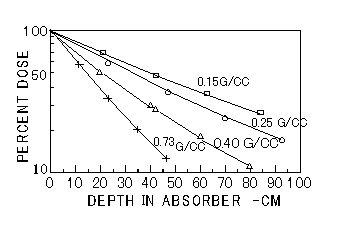 図3 Attenuation curves for 5 MeV X-rays in absorbers of various densities, with moving conveyor and scanning beam.