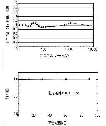 図2 市販されているガラス線量計のエネルギーとフェーディング特性の一例(原論文1より引用)
