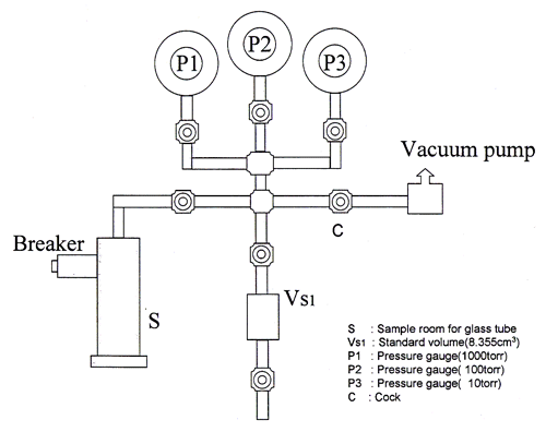 ¡¡¹©¶ÈÀ¸»º¤µ¤ì¤Æ¤¤¤ë͹âʬ»ÒÎ̥ݥꥨ¥Á¥ì¥ó¡ÊUHM-PE¡Ë¤Î¥Á¥å¡¼¥Ö(³°·Â6mm¡¢Æâ·Â4mm)¤òŤµ30mm¤ËÀÚÃǤ·¤Æ°ìÄê¤Î½ÅÎÌ(0.43£ç)¤È¤·¡¢¥¬¥é¥¹´É¤ËÆþ¤ì10-3Torr¤Ë浤¤·¤ÆÉõ¤º¤ë¡£Êü¼ÍÀþ¾È¼Í¤Ë¤è¤ê¥¬¥é¥¹´ÉÆâ¤ËȯÀ¸¤·¤¿¿åÁÇ¥¬¥¹¤ÎÎ̤ϡ¢¿¿¶õ¥é¥¤¥ó¤È°µÎϷפǹ½À®¤µ¤ì¤ëÁõÃÖ(¿Þ2)¤ò»È¤¤¡¢¦Ì¥â¥ë¤Î¥ì¥Ù¥ë¤Ç·×¬¤¹¤ë¡£¤³¤ÎÁõÃ֤ϡ¢¿¿¶õÃæ¤Ç¥¬¥é¥¹´É¤òÇˤ뤿¤á¤ÎÅż§¥Ï¥ó¥Þ¡¼ÉÕ¤¤Î¡Ö»îÎÁ¼¼¡×¡¢¿¿¶õ·×¬¥»¥ó¥µ¡¼(MSK¥Ð¥é¥È¥í¥ó¡¢ÀºÅÙ:¡Þ0.01Torr/¥Õ¥ë¥¹¥±¡¼¥ë100Torr)¡¢¿¿¶õ¥Ý¥ó¥×µÚ¤Ó¿¿¶õ¥Ð¥ë¥Ö¤«¤é¹½À®¤µ¤ì¤Æ¤¤¤ë¡£